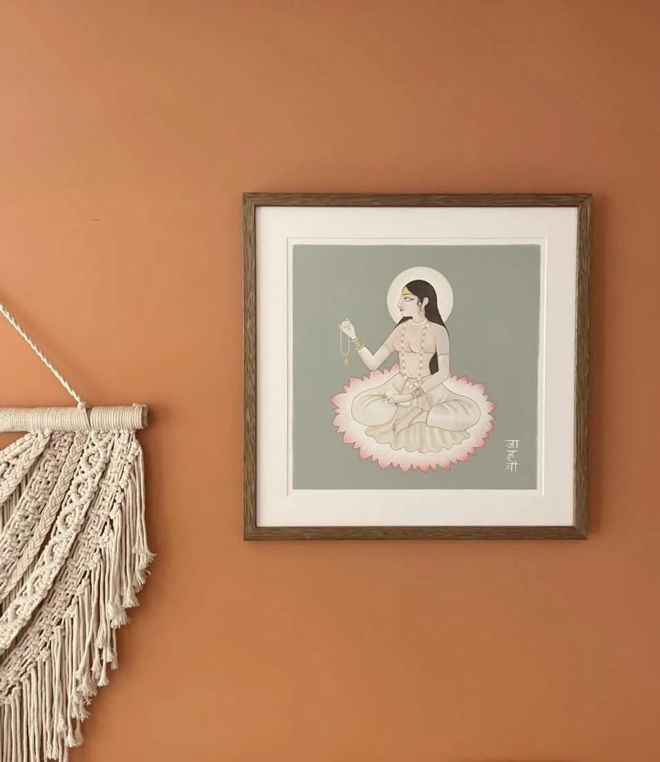 Our original artworks which are currently available for purchase are showcased here. Jahnavi is the artist and creator behind our designs, and her work draws inspiration from traditions of Indian miniature painting, Sanskrit texts, Indian philosophical principles, and motifs from nature.